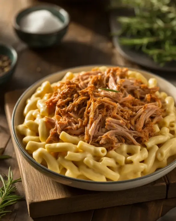 30-Minute Pulled Pork BBQ Mac And Cheese is my go-to comfort dinner when time is short, the day got away from me, and everyone is circling …