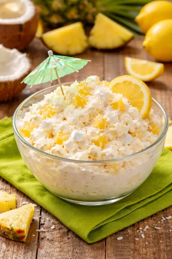 Piña Colada Fluff is what I make when I want something sweet and tropical but I do not want to bake, frost, or stress. You know …