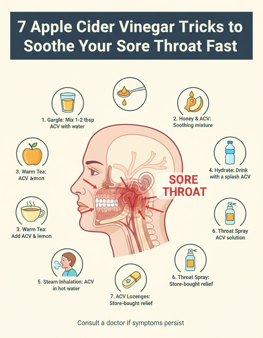 Ugh, nothing knocks you down faster than a scratchy, painful throat. I’ve been there—waking up feeling like I swallowed a handful of sandpaper. That’s why these 7 Apple Cider Vinegar Tricks That May Help Your Sore Throat Fast are total game-changers. Let’s be real, sipping boring tea isn’t the only option. And if you’re into easy homemade fixes like I am, you probably love a cozy recipe too (like these breakfast cookies for when you can actually swallow again, or that apple cider doughnut cake—my favorite, especially for fall sniffles).