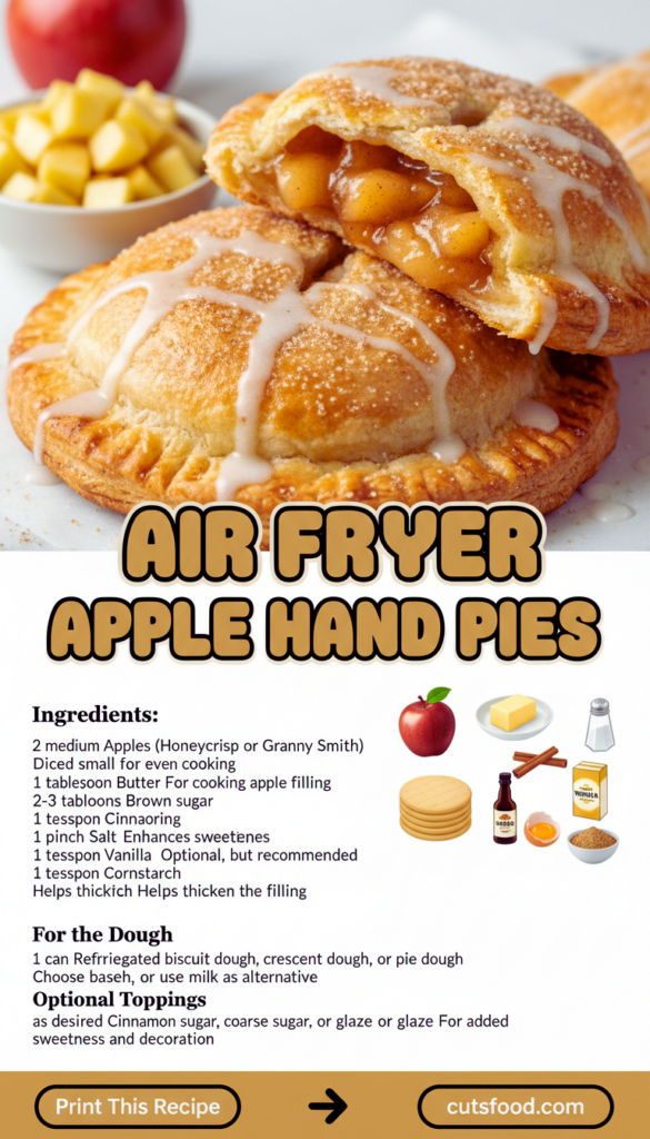 These Air Fryer Apple Hand Pies hit that perfect spot between homemade and low effort, and they are honestly hard to mess up once you know the basics. Keep the filling thick, do not overstuff, and let the air fryer do its thing. If you want to compare another solid take on the recipe, I have bookmarked Air Fryer Apple Hand Pies | Belly Full and Air Fryer Apple Hand Pies – The Country Cook for extra tips and flavor ideas. Now go grab those apples and make a batch, because you deserve a warm cinnamon bite today.
