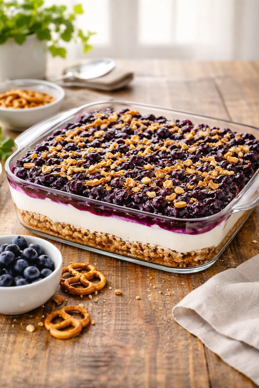 I have made BLUEBERRY PRETZEL SALAD enough times to learn what can go wrong and how to avoid the classic problems. Nothing here is hard, but a couple small moves make a big difference.