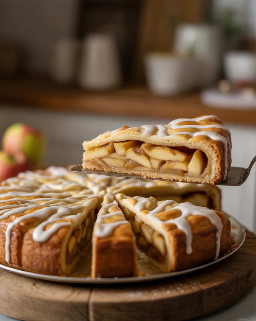 Caramel drizzle: Warm up 1/3 cup caramel sauce and zig-zag on top of the glaze. It looks fancy with no extra work. Cheddar in the crust: Add 1/2 cup finely grated sharp cheddar to the dough for that classic apple cheddar moment. Puff pastry shortcut: Use two sheets of thawed puff pastry instead of homemade crust for a lighter, flakier version. Spiced sugar top: Skip glaze and brush with milk, then sprinkle with cinnamon sugar before baking for a crackly top.