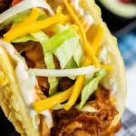 - Nest a few chicken pieces into each waffle taco shell.