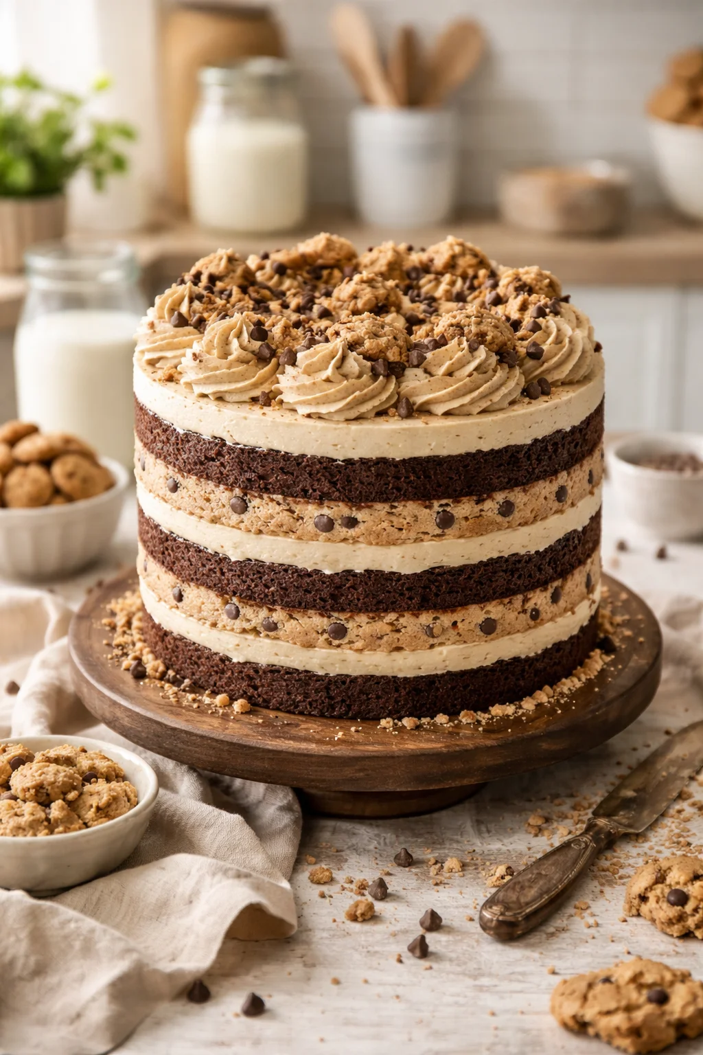 The main idea is simple: you bake tender cake layers, then you add safe to eat cookie dough pieces into the layers so you get real cookie dough flavor without any worry. I usually go with a vanilla based cake because it lets the cookie dough shine. If you love a dessert rabbit hole, you might also like browsing my favorite cake ideas here: cake recipes and cake inspiration.