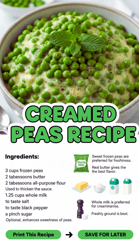 Let us keep this practical. The ingredients are basic, but a few little choices can take your Creamed Peas Recipe from fine to honestly delicious.