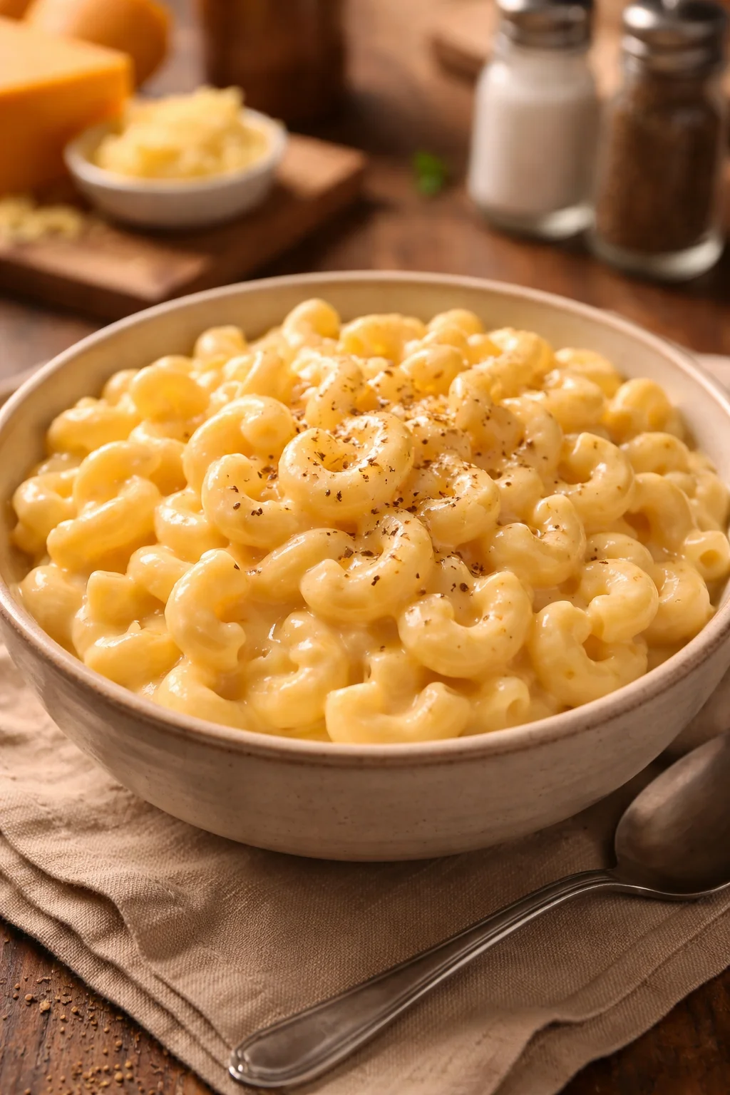 I keep it pretty straightforward. I use elbow macaroni, a mix of cheeses, and a combo of milk and something creamy like evaporated milk or a little cream. Evaporated milk is one of those quiet heroes because it helps the sauce stay smooth.