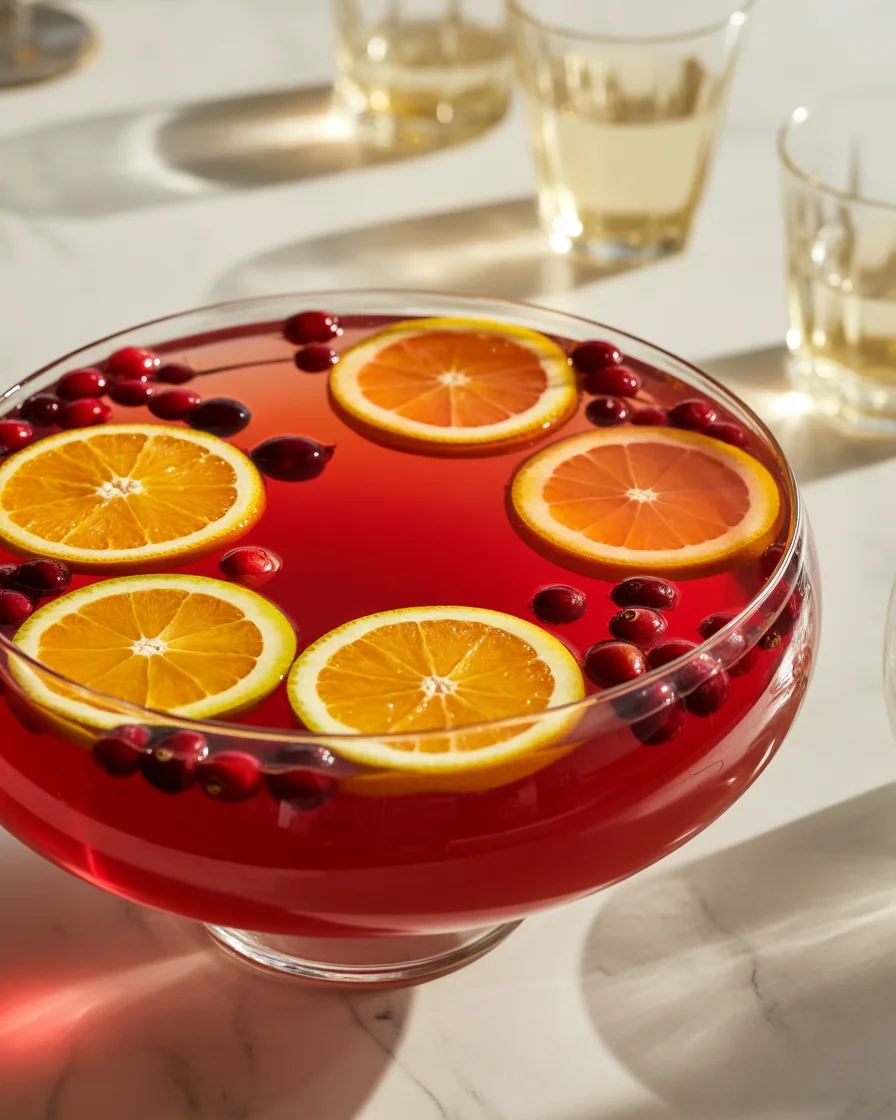 Garnish generously. Big slices of orange and lime, whole cranberries, and a rosemary sprig look beautiful and add subtle flavor. Presentation matters when your punch is the centerpiece.