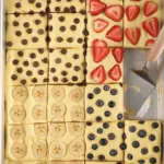 Don’t be afraid to experiment. Sometimes I’ll divide the pan in quarters and do a different topping in each section. My indecisive family appreciates the variety. Freeze the leftovers in strips (if there are any). They toast up nicely the next morning — just like a waffle.