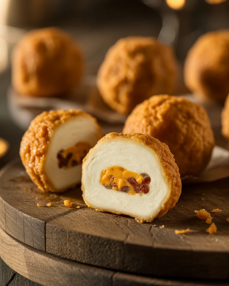 Coating tips: Set up a little station with bowls of chopped bacon, toasted panko, crushed butter crackers, minced chives, or finely chopped pecans. Roll the balls while they’re cold so the coatings stick.