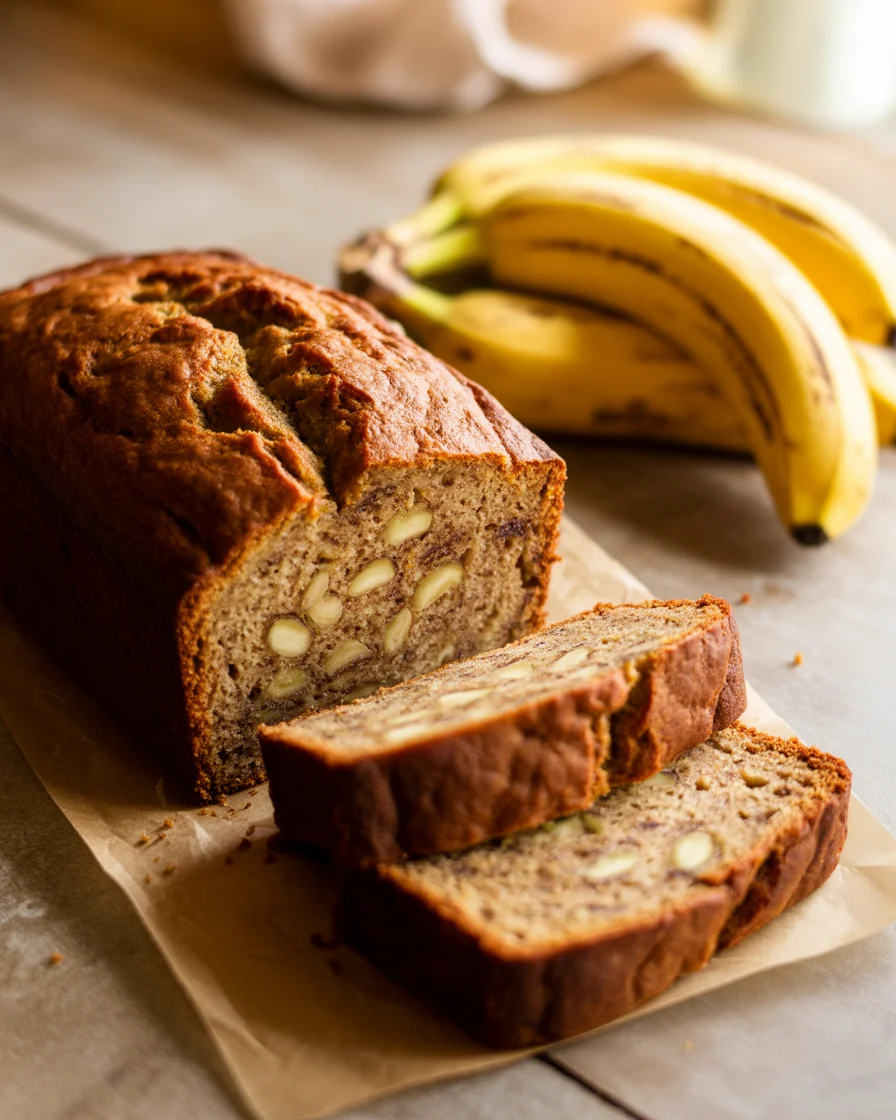 About texture: leave a few small banana chunks in the mash so you get those little pockets of fruit in the slice. Also, to prevent a gummy center, make sure your baking soda is fresh. If your oven runs hot, check early and tent the loaf so the top doesn’t over-brown.