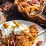 So that’s the whole story: a bowl of warm, saucy comfort with toasted pecans and soft pumpkin cake on top. Easy Pumpkin Pecan Cobbler really is one of those low-effort, high-reward recipes you’ll make again and again. If you want to compare versions, I love the clear instructions in this Pumpkin Pecan Cobbler (highly rated!) – Lauren’s Latest and the cozy vibes from Pumpkin Pecan Cobbler – The Jam Jar Kitchen. Grab a spoon, scoop it hot, and let that caramel sauce convince you to put this on repeat.