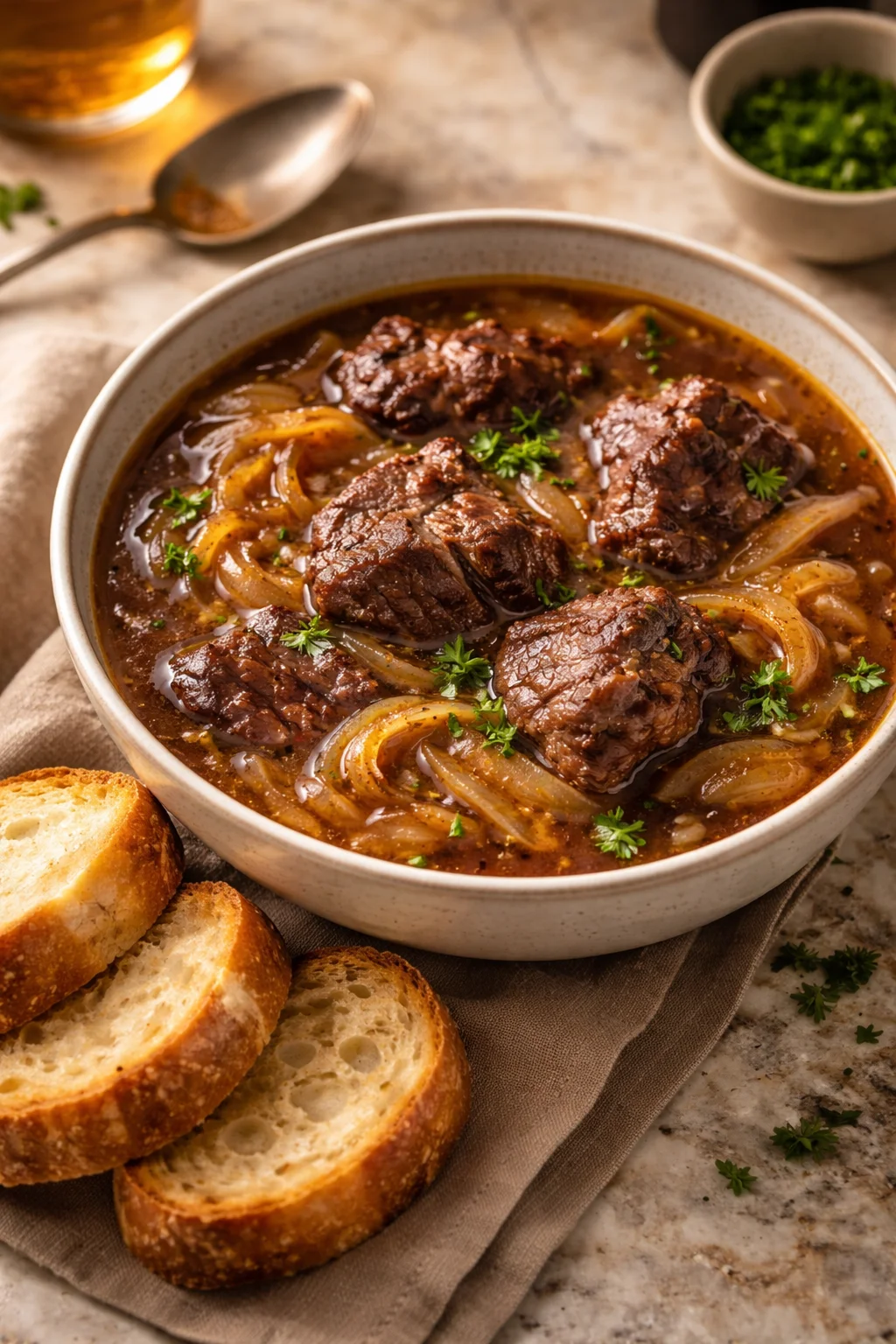 French Onion Beef Short Rib Soup is what I make when I want something cozy but I am honestly tired of “regular” soup. You know those nights when it is cold, you are hungry, and you want dinner to feel like a hug? This is that kind of meal, with sweet onions, rich beef, and that cheesy toast moment that makes everyone hover around the pot. I started making it after craving French onion soup and braised short ribs at the same time, and I figured, why not combine them. It is simple enough for a weekend, but it tastes like you put in way more effort than you did.