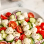 That’s it. These simple ingredients let the cucumbers shine while the tomatoes and mozzarella bring the Caprese charm. It’s the reason my family now requests this as a side with grilled chicken and even as a light lunch on its own. If you love speedy, no-fuss recipes like this, you might also enjoy my current favorite antipasto salad for those nights when you want bold flavors with minimal effort.