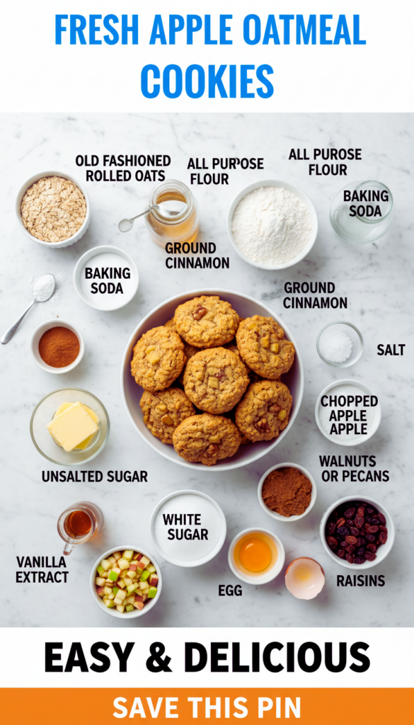 FRESH APPLE OATMEAL COOKIES are my go to move when I want something sweet but I also want to feel like I made a smart choice. You know those days when you have one lonely apple on the counter, a half bag of oats in the pantry, and zero desire to run to the store? That is exactly when these cookies show up and save the afternoon. They smell like cinnamon and warm apples while they bake, and they come out soft with little chewy edges. I started making them for quick lunchbox treats, but honestly I keep “testing” them all day long.