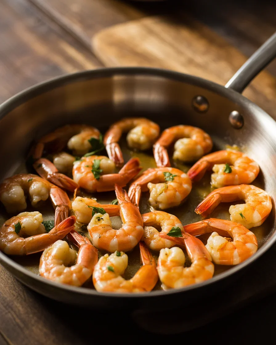 Shrimp cook fast, usually 1 to 2 minutes per side. I sear them just until they curl and turn pink, then transfer them out while I finish the sauce. Overcooked shrimp get rubbery. Bring them back in right at the end so they stay tender and glossy.