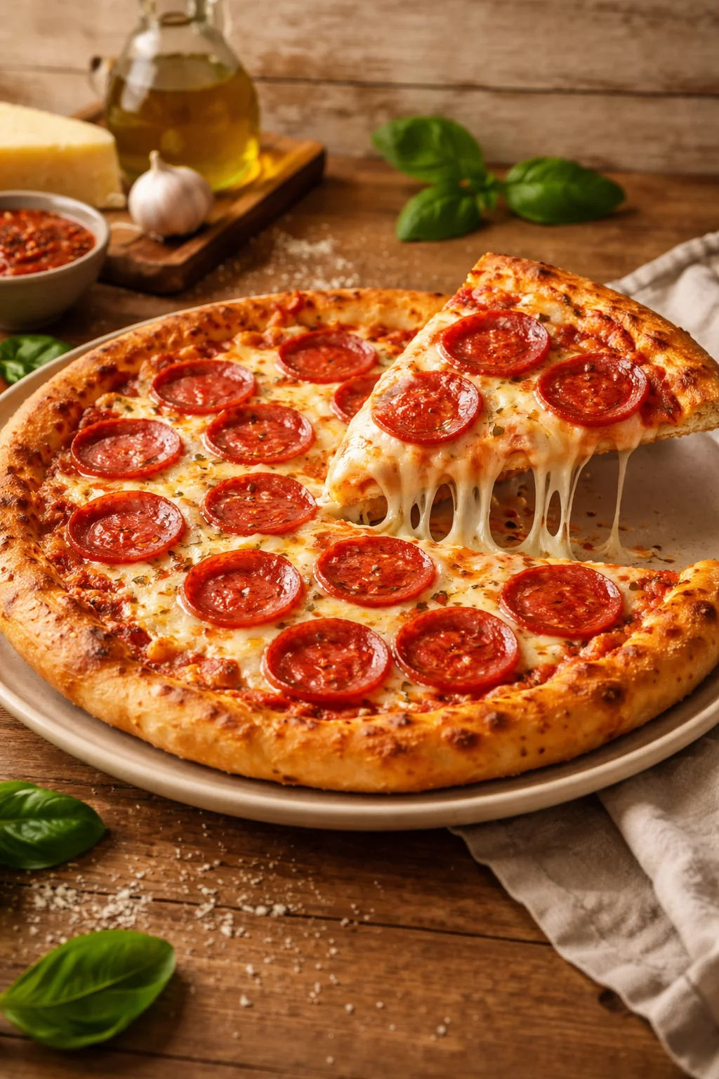 Little tip from my many pizza nights: brush the crust edge with olive oil right when it comes out, then sprinkle a tiny pinch of salt and oregano. It tastes like the best corner slice from a pizza place.