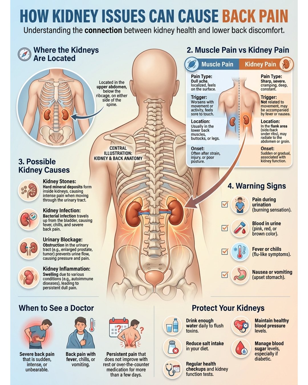 Ever wake up with an ache in your lower back and wonder, โHow Kidney Issues Can Cause Back Pain?โ Letโs just say, youโre not aloneโbelieve me, Iโve squirmed through it myself. The thing is, most folks think back pain just means you slept weird or lifted something off. But, surprise! Sometimes, itโs kidneys waving a big flag. If youโre here itching for practical tips, or maybe just want to see how it all connects, stick with meโweโre diving right in. Oh, and if youโre eyeing ways to help your back with the old ice-and-heat trick, or maybe curious about other mystery aches, check out these helpful reads: relieve back pain old school ice heat method and 10 warning signs liver issues you can’t ignore. Okayโletโs go.