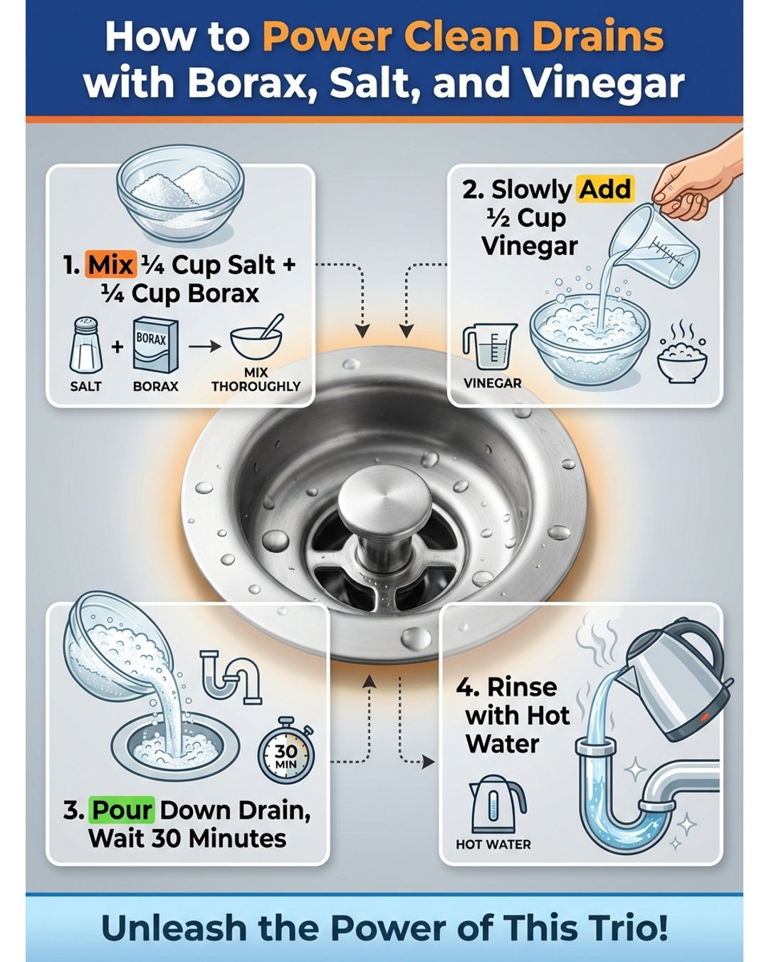 How to Power Clean Drains with Borax, Salt, and Vinegar