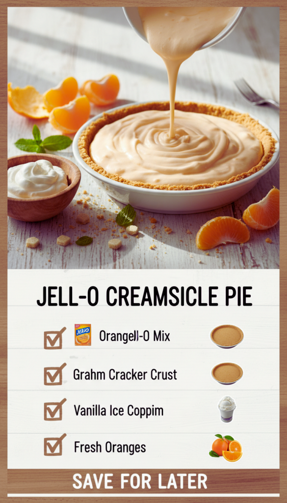 Jell-O Creamsicle Pie is my go to move when I need a dessert that feels like sunshine but I do not want to turn on the oven. You know those days when you promised to bring something sweet, but you also promised yourself you would not stress about it? This is for that exact moment. It tastes like an orange and vanilla ice cream swirl, but in a cold, creamy slice you can actually serve at a table. I started making it for summer hangouts, and now my family asks for it year round. If you like bright citrus desserts that are simple and reliable, you are going to love this one.