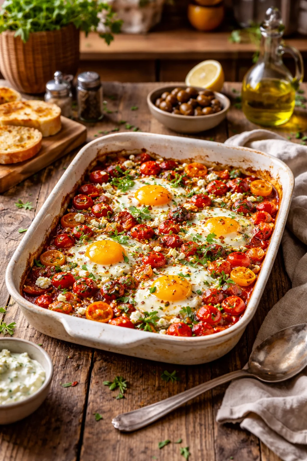 Mediterranean Baked Feta Eggs are my go to breakfast when I want something warm, filling, and kind of fancy without actually trying that hard. You know those mornings when you are hungry but also tired of plain scrambled eggs? This is for that mood. It is salty feta, jammy tomatoes, a little garlic, and eggs baked right in the middle until they are just how you like them. I started making it on weekends, and then it slowly turned into a weekday hero too. If you have some bread around for dipping, you are basically set.