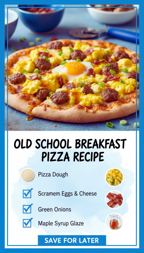 This Old School Breakfast Pizza Recipe is pretty forgiving, so do not stress if you need to swap a thing or two. The basic idea is simple: a quick crust, fluffy eggs, savory meat, and plenty of cheese. I like to keep the ingredient list realistic, like stuff you can actually grab at a normal grocery store without hunting.