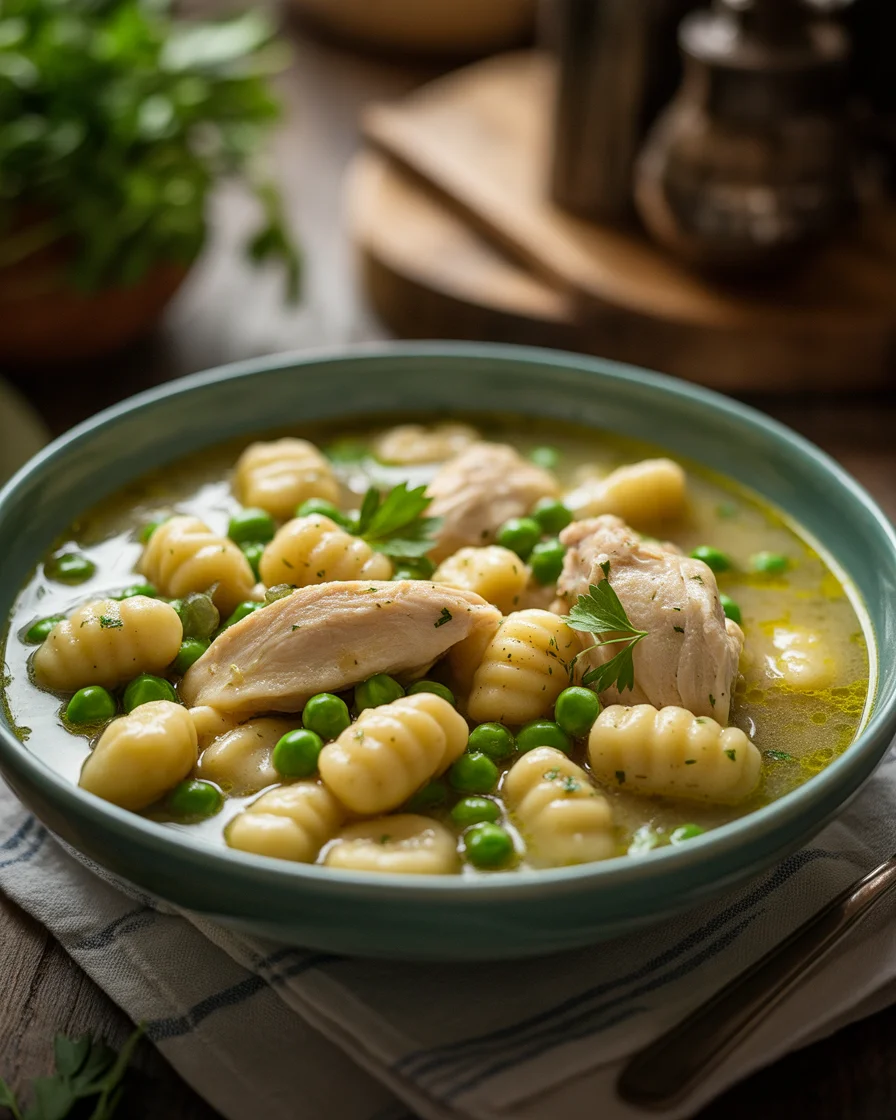 Can I make it gluten-free? Yes. Use gluten-free gnocchi and swap the flour for a gluten-free all-purpose blend or a cornstarch slurry. Check your broth label too.