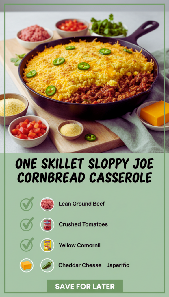 One Skillet Sloppy Joe Cornbread Casserole is one of those recipes that feels like you tried harder than you actually did, and I love that for us. You get saucy, savory filling and a golden cornbread top, all from one skillet and simple ingredients. If you want to compare versions, I found great inspiration from One Skillet Sloppy Joe Cornbread Casserole – I Wash You Dry and this tasty take from Skillet Sloppy Joe Cornbread Casserole – Bread Booze Bacon. Put it on your dinner list for the next busy weeknight, and do not be surprised if someone asks for it again before the week is over.