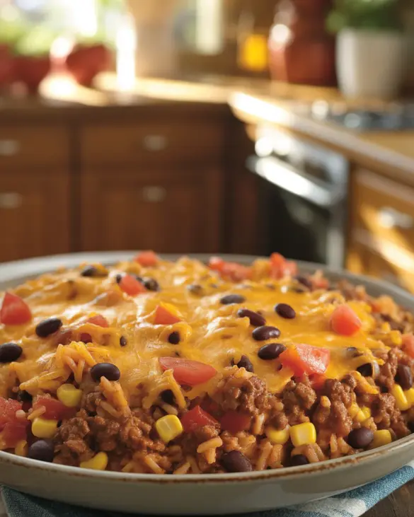 Satisfying Mexican Ground Beef Casserole with Rice for Dinner