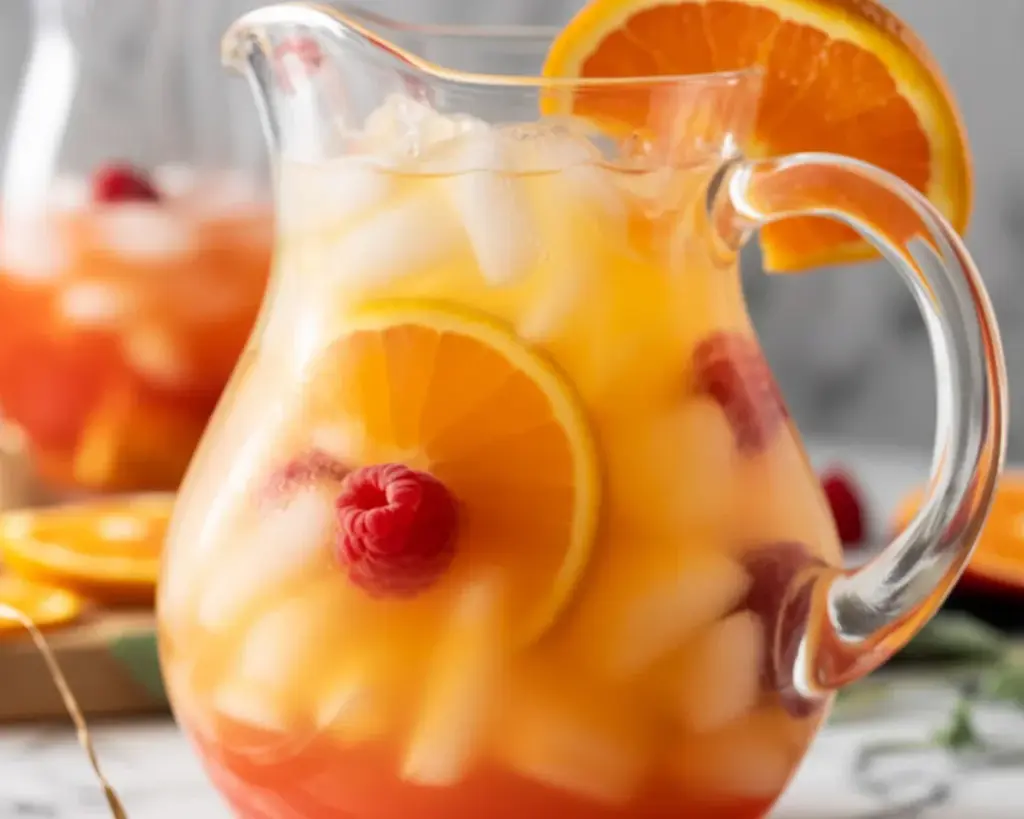 A refreshing and colorful punch that combines the sweet flavors of peach and citrus, perfect for serving a crowd with minimal effort.