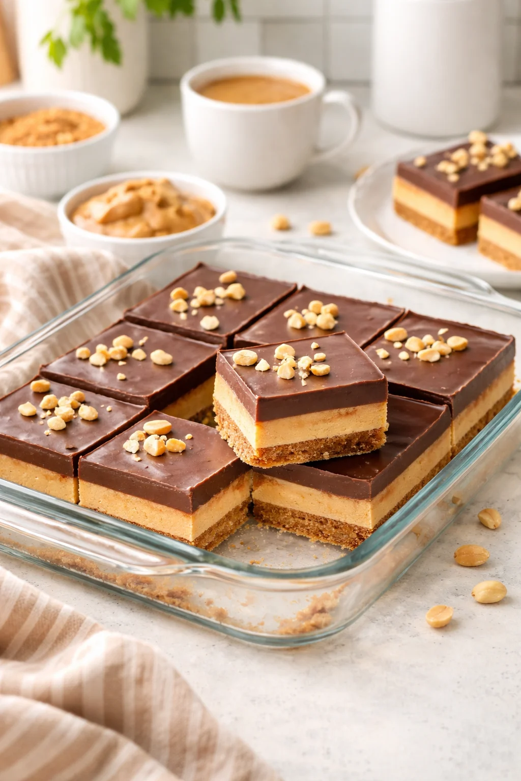 - A little extra peanut butter for the topping: Optional, but it makes the chocolate layer softer and easier to slice.