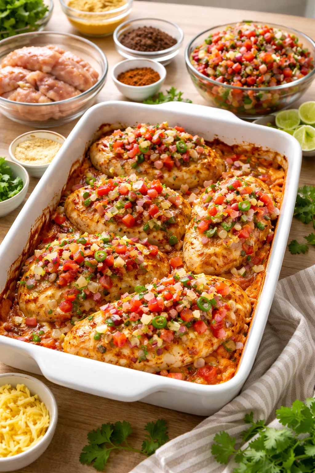 Here is what I do differently. Before baking, I squeeze lime juice over the chicken and rub it with a little olive oil, garlic powder, cumin, salt, and pepper. Then I add chopped cilantro right into the pico de gallo if it needs a boost. After it bakes, I finish with even more lime juice. It wakes the whole dish up.