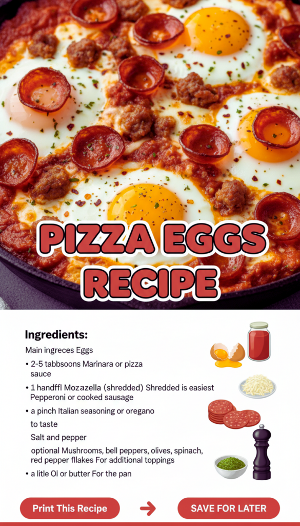 Pizza Eggs Recipe is my favorite answer to that familiar morning problem: you want something warm and filling, but you do not want to cook a whole production. I started making this on busy weekdays when I was bored of plain scrambled eggs, but also not in the mood for a full on breakfast pizza. This hits the sweet spot because it tastes like pizza, yet it is basically eggs with a few bold toppings. It is quick, flexible, and honestly kind of fun to eat straight from the skillet. If you love savory breakfasts, this one is going to land right in your regular rotation.