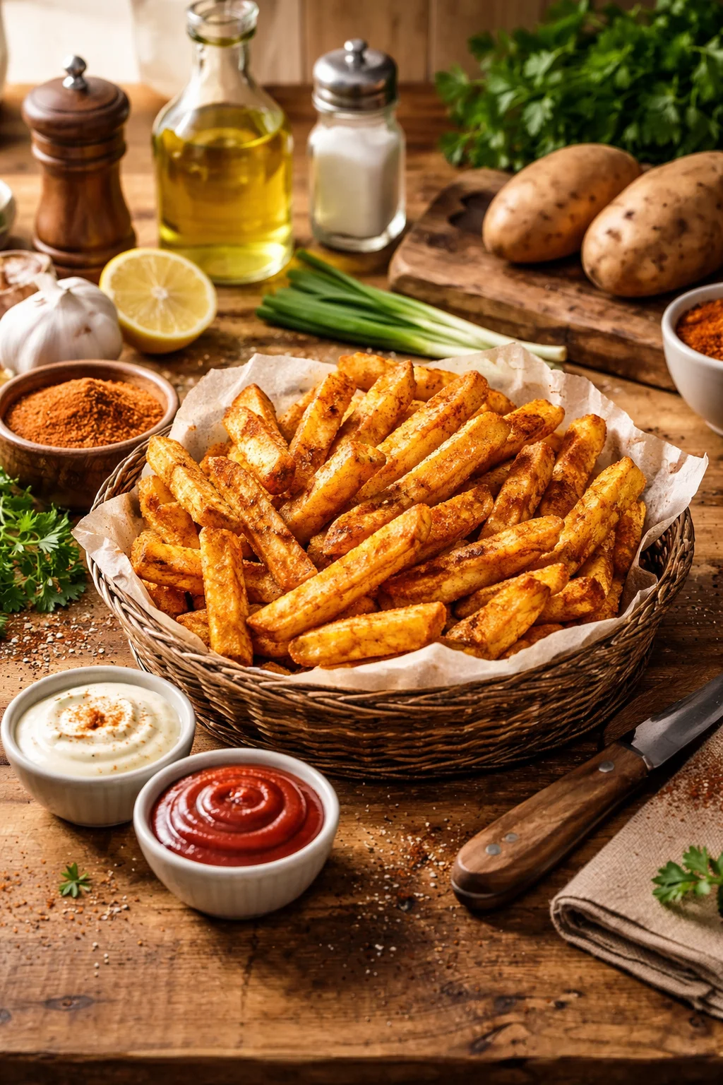 These fries are the kind of snack that makes people hover near the kitchen. I usually serve them straight from the bowl, and I do not pretend I am going to “plate” them nicely. They are fries. They are meant to be grabbed fast.