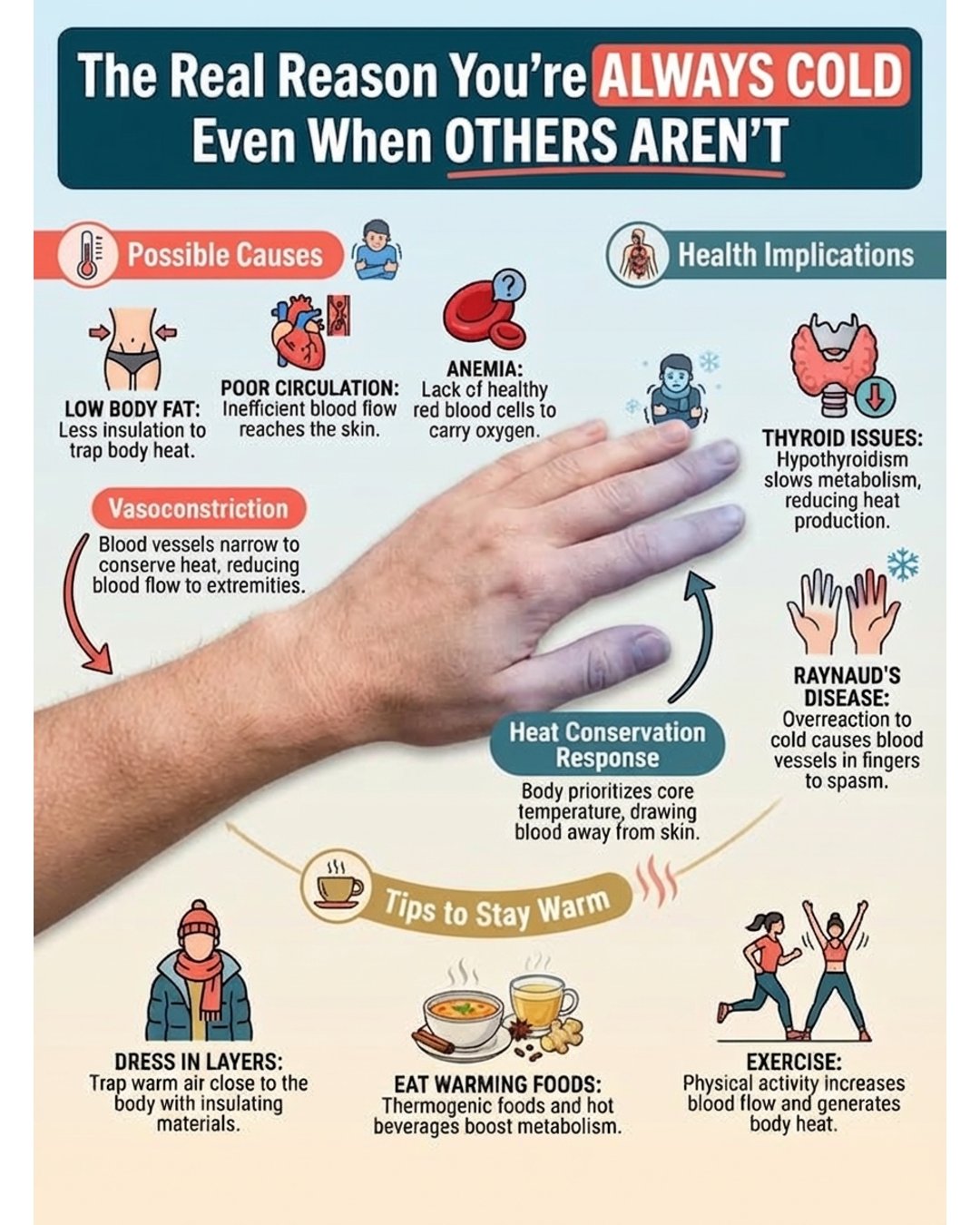 Why do my hands and feet stay frozen, even with warm socks?