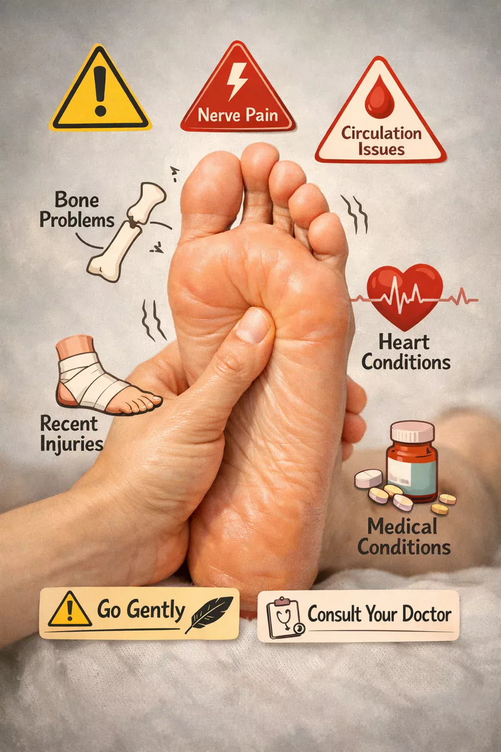 • Not everything’s sunshine. Don’t use reflexology when you have foot cuts, infections, or if your doctor says “nope.”