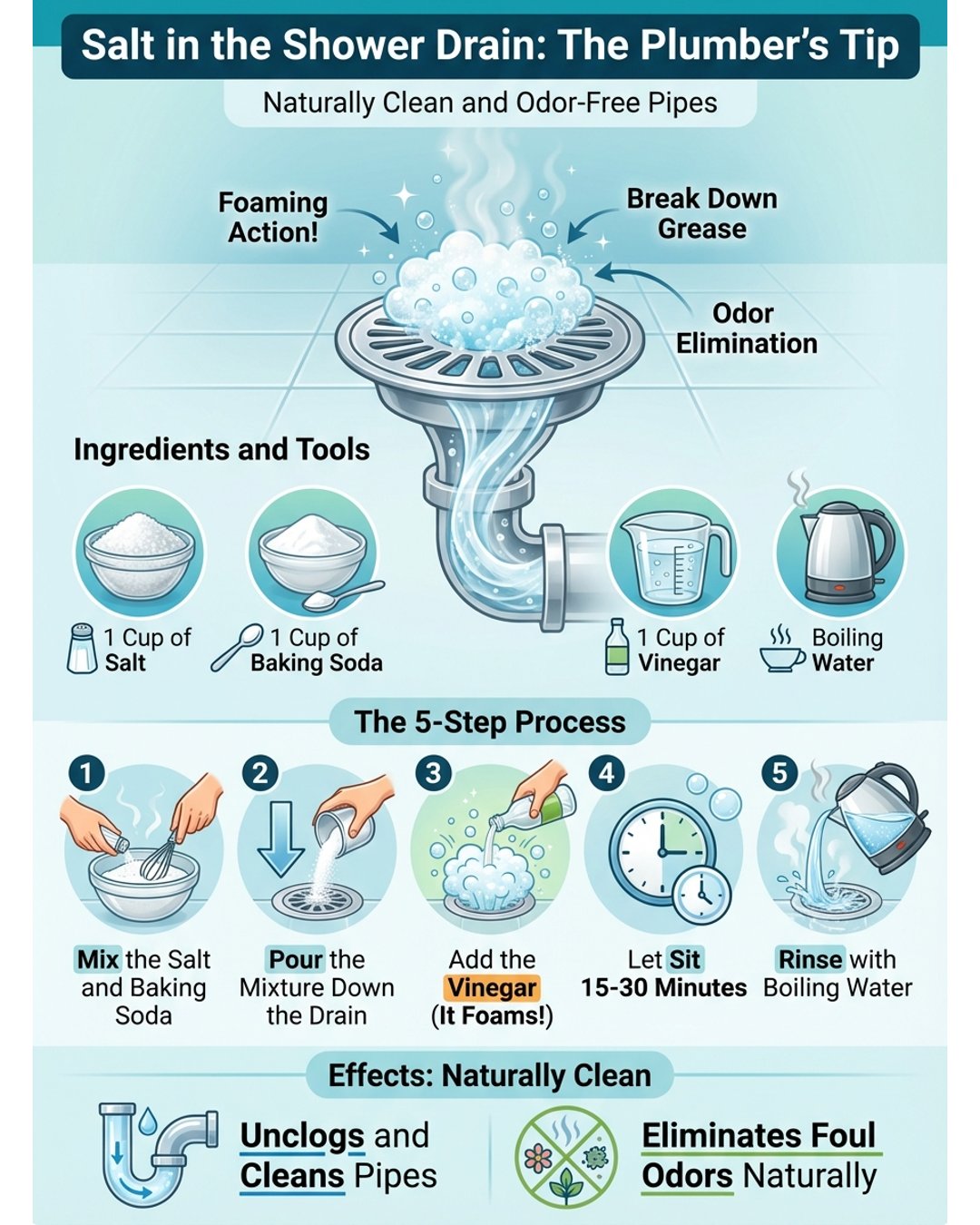 Ever get that weird smell wafting from the shower drain, or notice the water’s just not going down as quick as it used to? Salt in the Shower Drain: The Plumber’s Tip is honestly a game-changer. You’d be surprised—plain old salt. I didn’t know plumbers swore by this until my friend’s dad (he’s a plumber, the no-nonsense kind) spilled the beans after Thanksgiving dinner. Speaking of helpful tips, if you ever get wild in the kitchen like me, some cleaning hacks come in handy over on this list of cleaning tips. And if you love food and family stories, you’ve gotta check my favorite cornbread dressing recipe. Let’s break down how this salt trick works and what else can keep your bathroom running smooth!