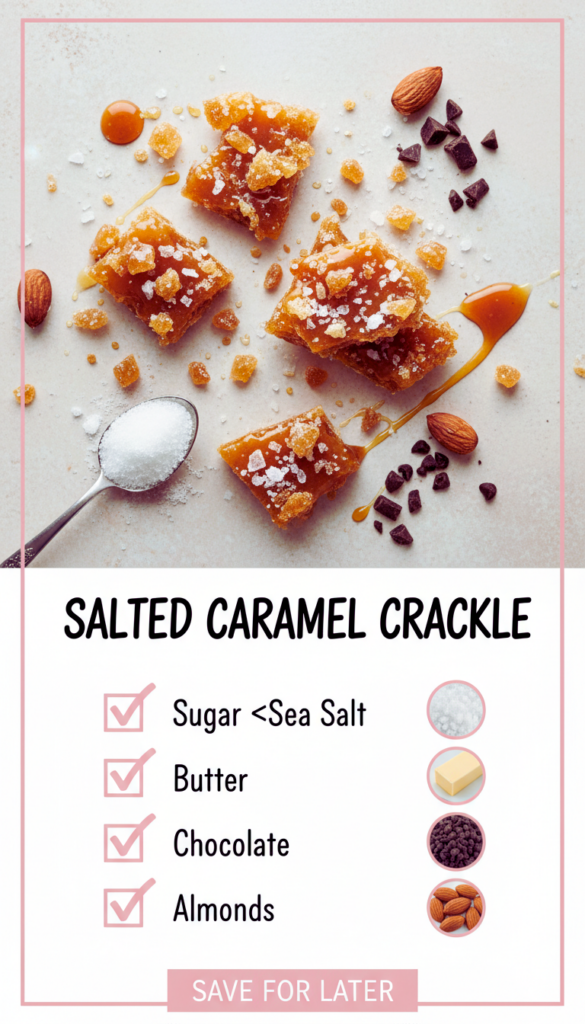 salted caramel crackle is the treat I make when I want something sweet, crunchy, and a little bit dramatic without turning my kitchen into a full time bakery. You know those days when you want dessert right now, but you also want it to feel special? This is my answer. It hits that buttery toffee vibe, has a pop of salt, and that crackly snap that makes everyone hover around the pan. I started making it for movie nights, and now it somehow shows up at every get together.