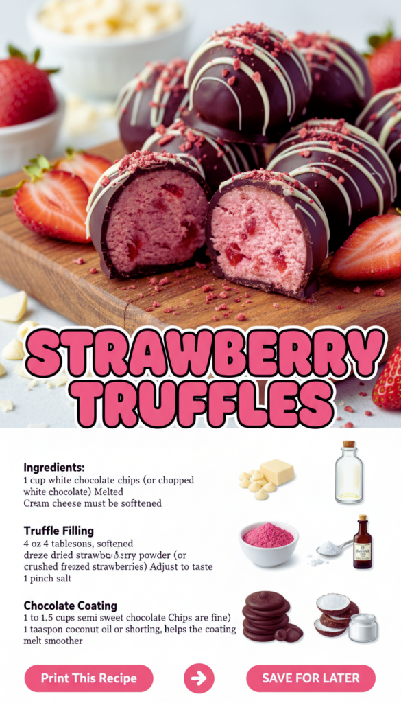 One thing I will say: if you use fresh strawberries in the filling, it can make the center too wet. Freeze dried strawberries give you that real fruit flavor without messing up the texture. That is the difference between a neat truffle and a sticky handful of regret.