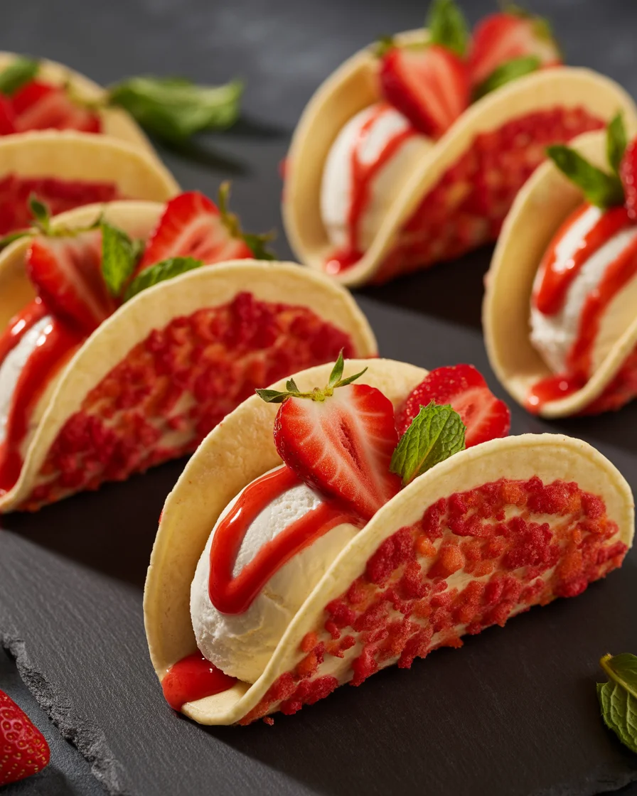 For a caramel vibe, drizzle lightly with salted caramel and sprinkle a pinch of flaky salt. That sweet-salty pairing on top of creamy filling and crisp shells is crazy good. The beauty is that Sweet and Crunchy Strawberry Crunch Cheesecake Tacos are a canvas. You can tweak the topping, keep the method, and never get bored.