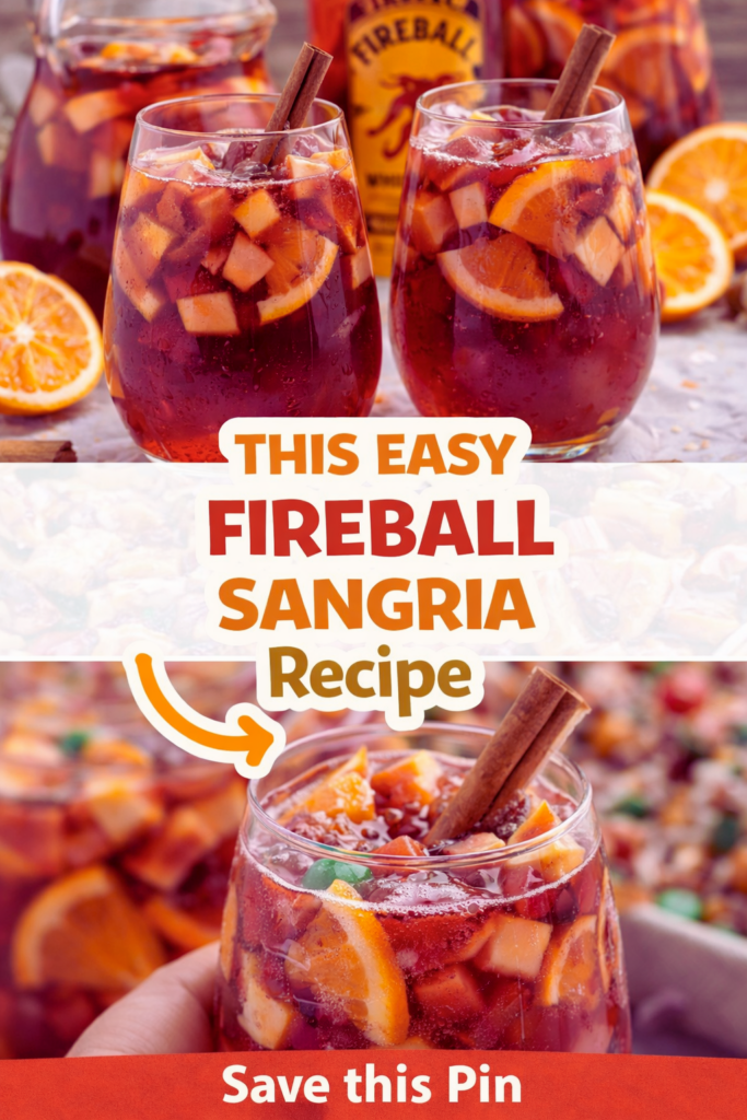 When you want big flavor with hardly any effort, This Easy Fireball Sangria Recipe hits the sweet spot. Build it in a pitcher, chill, and let the fruit and cinnamon do the work. If you are planning a summer bash, this Fireball Sangria – Red Wine Fireball Sangria Recipe for Summer is another great reference for warm weather twists. For fall parties, you might love the cozy spin in this Fireball Apple Cider Sangria guide. And if you want an inclusive spread, set out a pitcher of refreshing cranberry blood orange non-alcoholic sangria so everyone has a glass to toast with. Now grab a big pitcher, slice some fruit, and make a batch you will be proud to share.