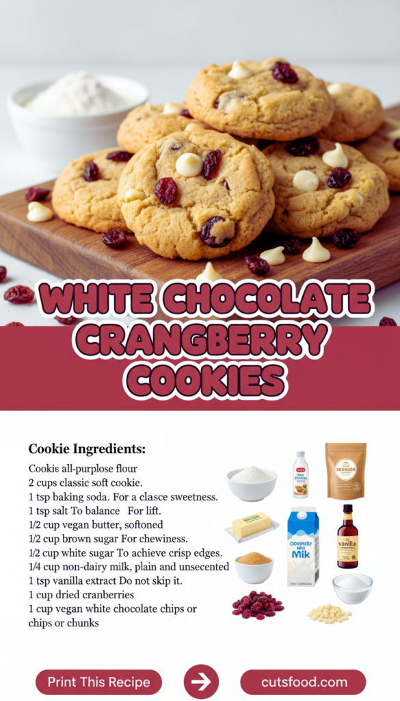 WHITE CHOCOLATE CRANBERRY COOKIES are my go to fix when I want something that feels a little fancy but still totally cozy. You know those days when you want a sweet treat for a movie night, a cookie for a coffee break, and something pretty enough to share, all at the same time? This recipe hits that sweet spot. It is bright, creamy, and just a little tart, which keeps it from feeling too sugary. Plus, it is vegan, so it is great for mixed crowds without making a big deal about it.