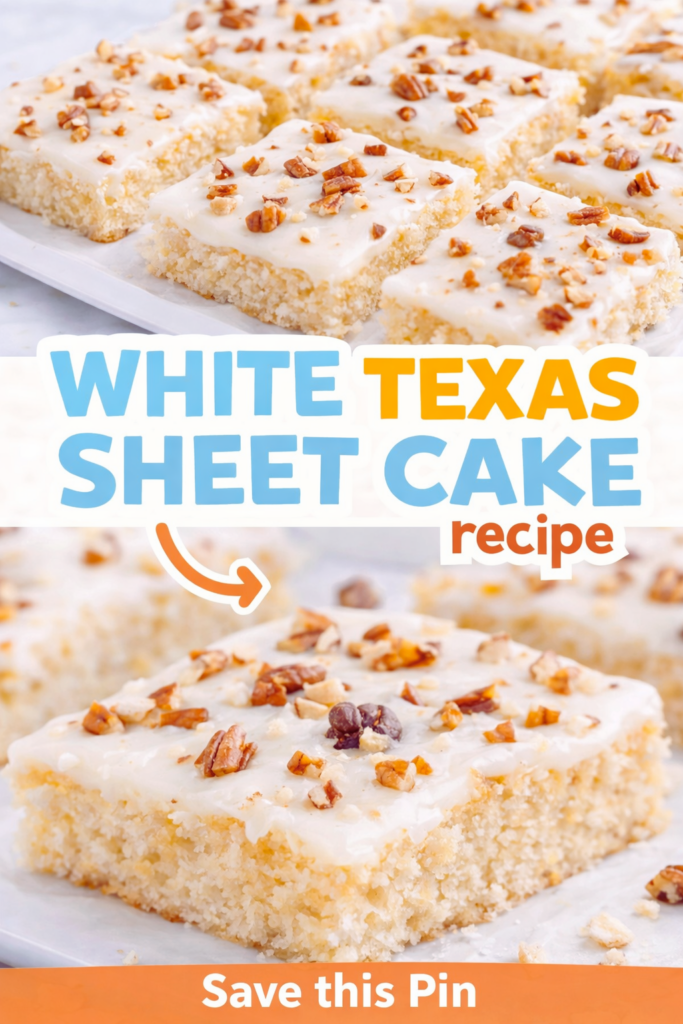 If you want a dessert that is simple to make, easy to transport, and loved by almost everyone, this is it. The warm frosting, the soft crumb, and that little hint of almond give White Texas Sheet Cake its charm. If you want to compare techniques or double-check measurements, you can peek at this helpful White Texas Sheet Cake Recipe – Allrecipes and the friendly walkthrough at White Texas Sheet Cake Recipe {+VIDEO} | Lil’ Luna. I hope you give it a try soon, cut generous squares, and watch them vanish. Happy baking, and save yourself a corner piece before it’s gone.